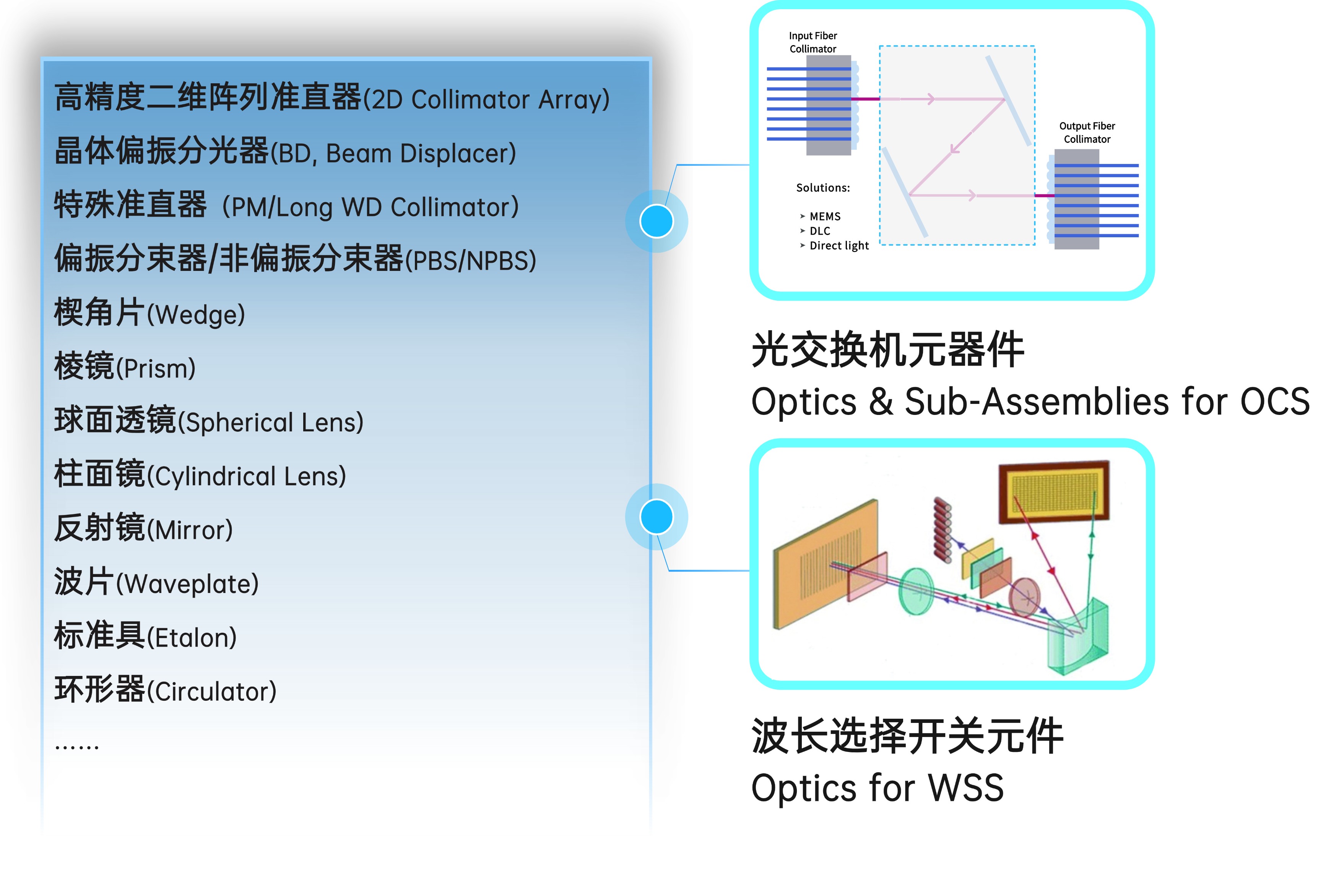 AG贵宾会·(中国)集团科技可以提供OCS、WSS用的各类光学元件和器件: