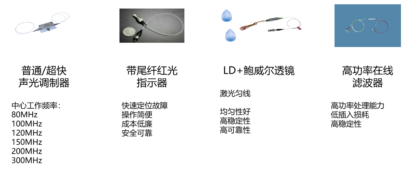 公司应用于工业激光的器件包括普通/超快声光调制器、带尾纤红光指示器、LD+鲍威尔透镜、高功率在线滤波器等。
